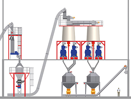 In the conveying range of shavings i.e. the usual incoming material before pelletising, the conveying capacities of the conveyor plants are between 30 and 200 m³/h. The conveying capacities for the pellet conveying that follows are between 5 and 150 t/h.