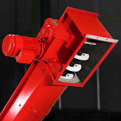 The pellets are extremely carefully conveyed thanks to the round trough form and the semicircular drivers, meaning that only a very low amount of abrasion is produced when conveying the pellets. The chain conveyors are manufactured in widths from 150 mm to 600 mm, with which an output of 5 to 80 t/h pellets can be achieved. Upward gradients of up to 40° are possible thanks to a special curved section. These conveyors are made of normal steels or high-grade steels.