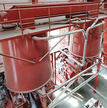 Die Konditionierung erfolgt in großen Behältern vor den Pressen. Das Nutzvolumen der Konditionierbehälter beträgt ca. 15m³. Dieses Volumen gewährleistet eine hohe Verweilzeit im Konditionierer und ist entscheidend für die Herstellung von Pellets mit einer hohen Qualität. Die Austragung aus dem Konditionierer erfolgt über robuste Rührwerke, die mit einer speziellen Abdichtung vom Innenraum getrennt sind.
